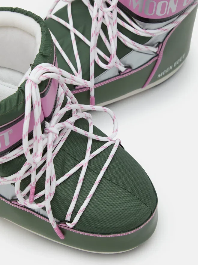 Buy Icon Low Space Racing Green Boots for Woman on Moon Boot Official Online Store. Discover the Collection on the Official Brand Website.