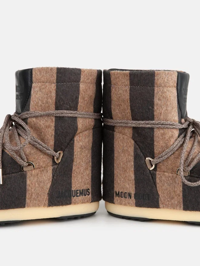 Buy Jacquemus + Moon Boot Icon Low Beige Striped Felt Boots for Woman on Moon Boot Official Online Store. Discover the Collection on the Official Brand Website.