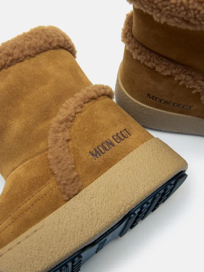 Moon Boot’s Latest Lineup Introduces a Fresh Wave of Empowering New Icons – Inspired by the Archives and Reimagined for Today. These Ltrack Tina Boots Are Crafted from Suede and Leather with Plush Shearling Trims, Set on Flexible Mid Sole and Lightweight Rubber Soles for Cloud-Like Comfort.