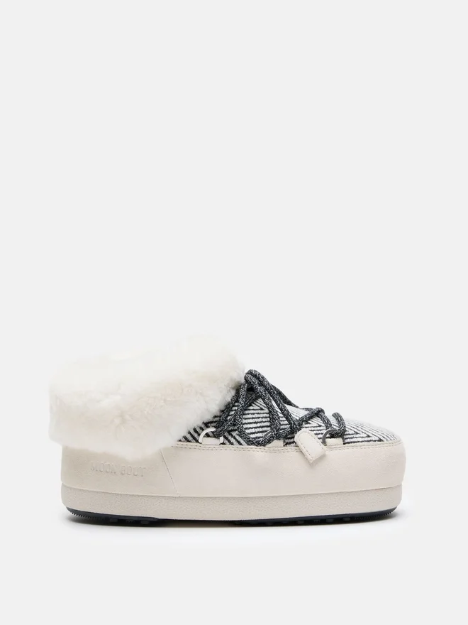 Comfort and Coziness in Every Step, Plus an Undeniable Fashion Factor: These Mules Are Part of Moon Boot’s First-Ever Capsule with Rising Knitwear Brand Guest in Residence. The Streamlined Silhouette is Topped with Sumptuous Faux Fur Cuffs and Set Atop Chunky Rubber Soles – Perfect for Apras-Ski Adventures and City Streets Alike.